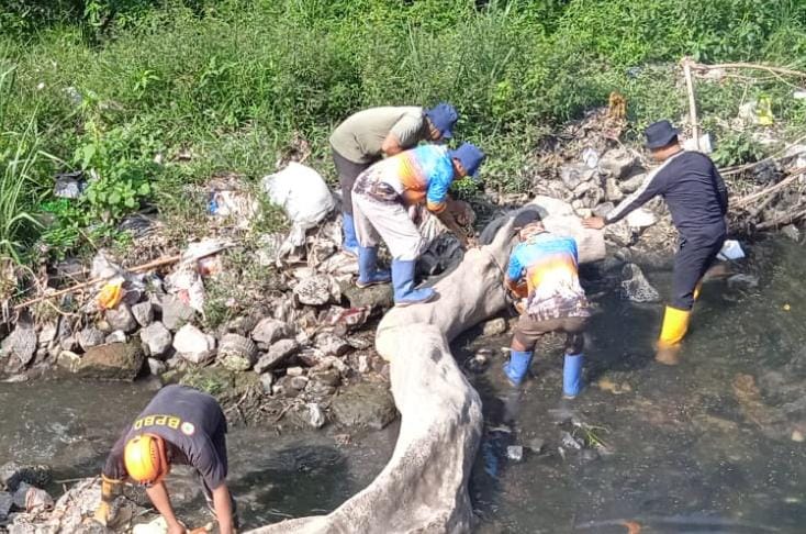 Pembersihan kali Jenes dalam rangka antisipasi bencana alam Bhabinkamtibmas bersama Relawan melaksanakan pembersihan aliran sungai dalam rangka mitigasi bencana alam banjir.