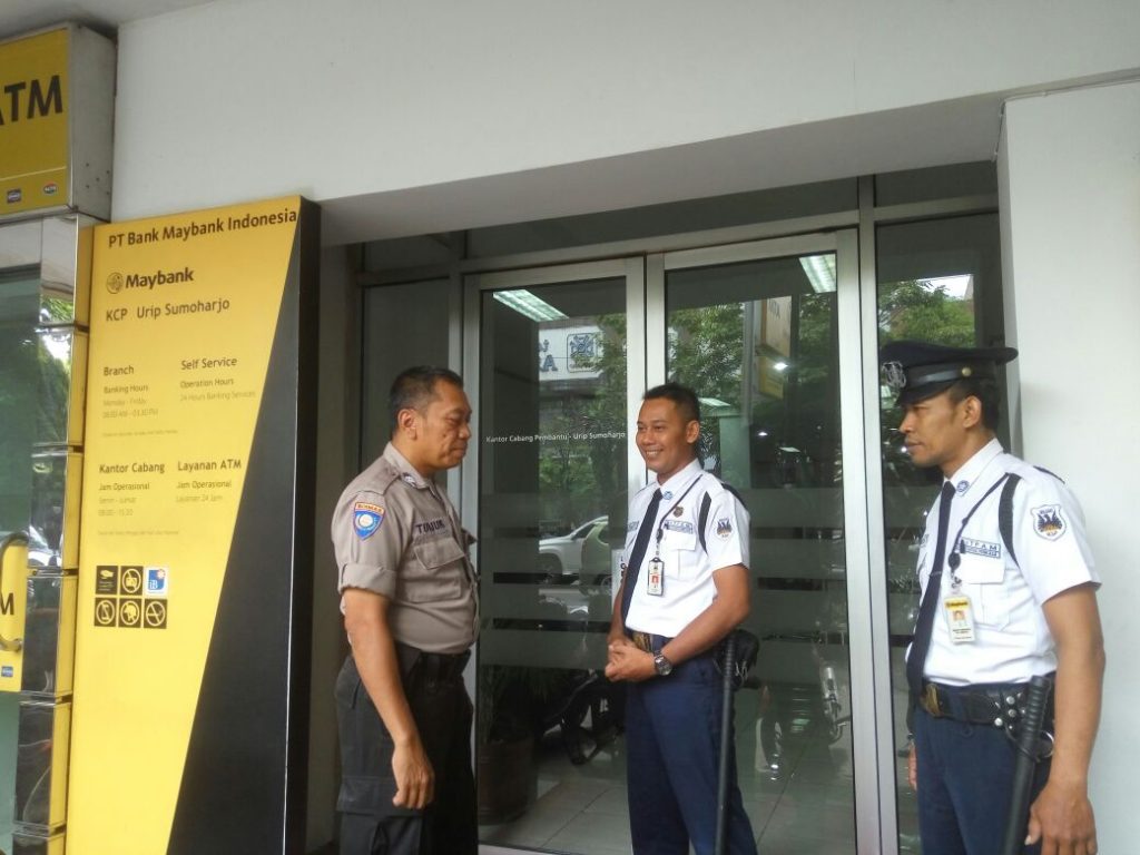 Bersamaan degan giat sambang Bhabin kamtibmas kel. Kepatihan wetan Aiptu Tunjung menyampaikan pesan kamtibmas yaitu agar anggota satpam dalam bertugas tetap meningkatkan kewaspadaan , memperhatikan setiap nasabah Bang dan orang – orang yang keluar masuk Bank.