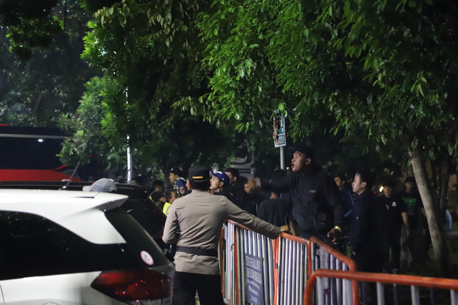 Polresta Surakarta- Polda Jateng- Tim Sparta Sat Samapta Polresta Surakarta mengamankan belasan suporter yang terpengaruh dan membawa minuman keras (Miras) pada saat pertandingan PSS Sleman versus Barito Putera FC di Stadion Manahan Solo, Senin (04/03/2025) malam.