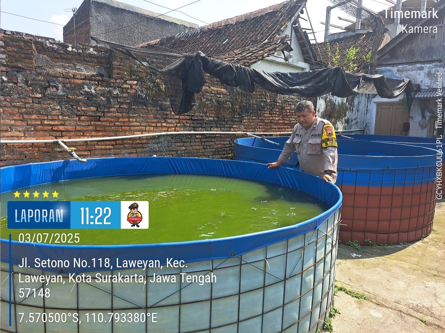 Selain memberikan himbauan kamtibmas, Aiptu Heru juga melakukan pemantauan terhadap lahan ketahanan pangan warga berupa budidaya ikan lele yang dikelola secara mandiri oleh masyarakat setempat.