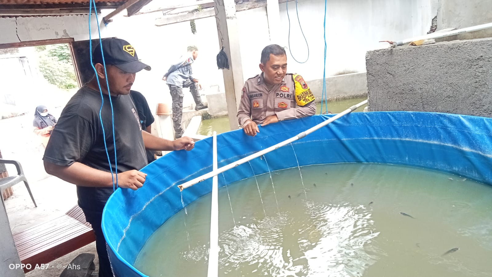 Dukung Ketahanan Pangan, Bhabinkamtibmas Purwosari Kunjungi Budidaya Lele di Wilayah Binaan