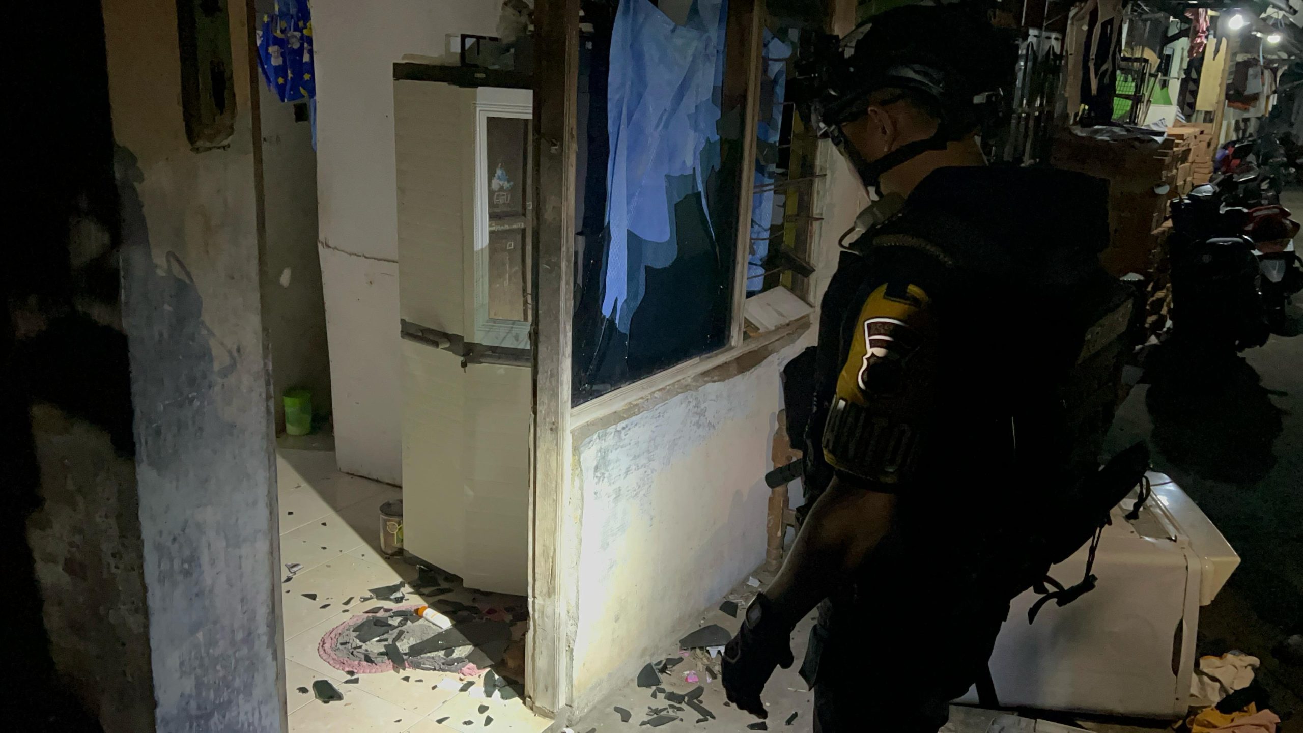 “Mendapatkan informasi tersebut tim sparta langsung menuju lokasi sesuai informasi dari pelapor, sampai di lokasi benar bahwa di lokasi telah terjadi pengrusakan yang mengakibatkan kaca jendela pecah akibat lemparan batu bata dan mesin cuci rusak akibat di banting pelaku,” ujarnya.