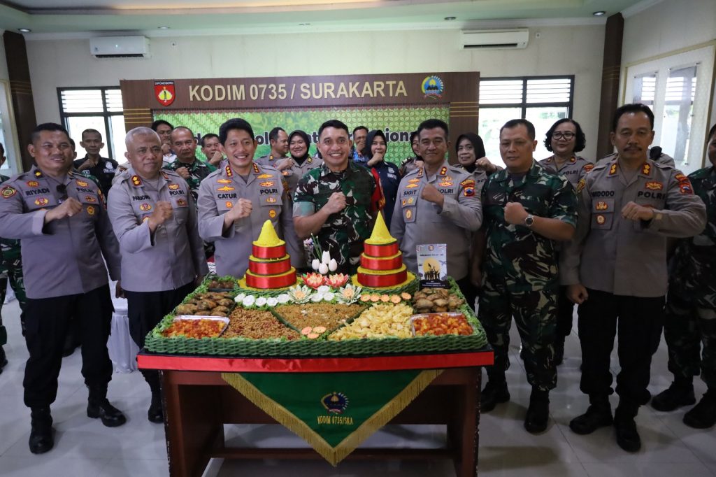 Polresta Surakarta- Polda Jateng- Jajaran Polresta Surakarta memberikan kejutan kepada jajaran Kodim 0735/Ska