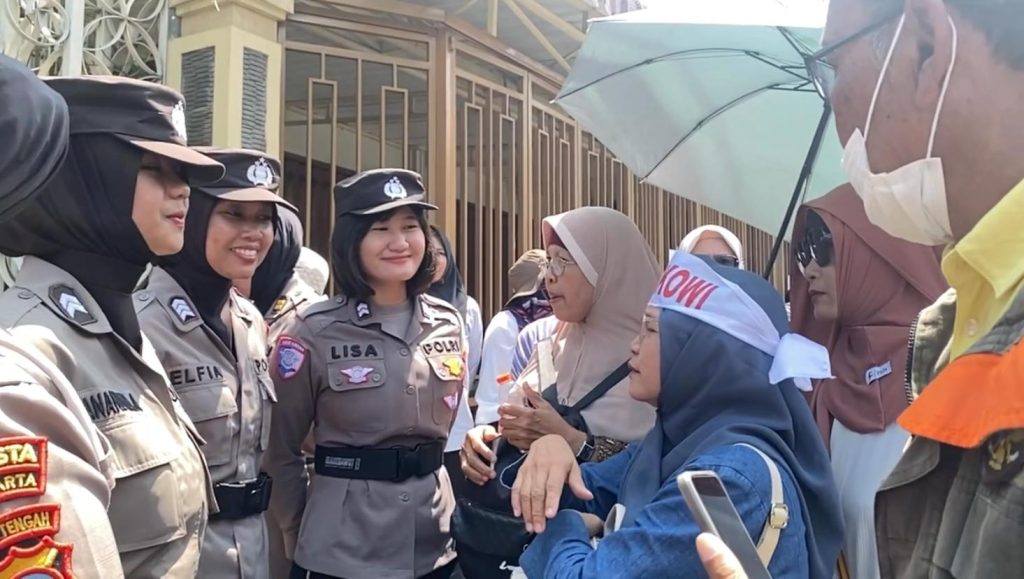 Polwan-Polwan dari Polresta Surakarta tampil menonjol dalam barisan pengamanan. Dengan ramah dan penuh senyuman, mereka memberikan imbauan dan menjaga komunikasi dengan peserta aksi. Pendekatan ini menciptakan atmosfer yang sejuk dan harmonis selama jalannya kegiatan.